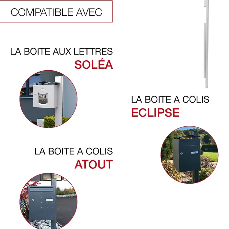 Produit sur-mesure : ce produit spécial est fabriqué à la commande. Pied à sceller Renz en 2 parties encliquetables. Possibilité de montage latéral droit ou gauche. Permet de poser votre boite aux lettres ou votre boite à colis, en bordure de propriété à la hauteur recommandée. Offre une imbrication harmonieuse de votre boite. Peinture poudre polyester sans plomb. Livré avec visserie permettant de fixer l’accessoire sur la boite. Garantie anticorrosion de 15 ans. Dimensions 100 x 90 x 1600 mm, scellement béton de 200 mm impératif.Pour une installation optimale de la boite à colis Atout ou de la boite aux lettres normalisée Soléa, optez pour le pied latéral à sceller. Il s’adapte parfaitement à votre boite grâce à son large choix de coloris et sa possibilité de montage latéral à droite ou à gauche. Conçu pour durer, le pied latéral est garanti 15 ans contre la corrosion.Photos non contractuelles, se référer au RAL pour le coloris.