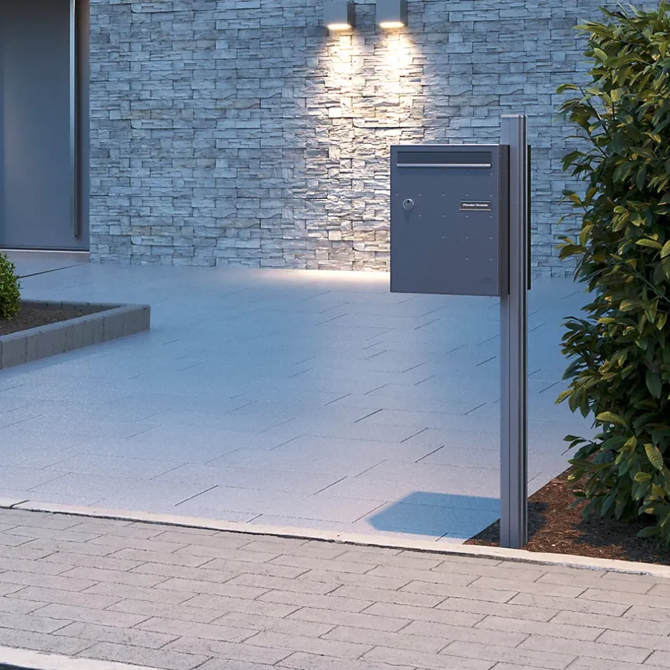 Pied à sceller Renz en 2 parties encliquetables. Possibilité de montage latéral droit ou gauche. Permet de poser votre boite aux lettres ou votre boite à colis, en bordure de propriété à la hauteur recommandée. Offre une imbrication harmonieuse de votre boite. Peinture poudre polyester sans plomb. Livré avec visserie permettant de fixer l’accessoire sur la boite. Garantie anticorrosion de 15 ans. Dimensions 100 x 90 x 1600 mm, scellement béton de 200 mm impératif.Pour une installation optimale de la boite à colis Atout ou de la boite aux lettres normalisée Soléa, optez pour le pied latéral à sceller. Il s’adapte parfaitement à votre boite grâce à son large choix de coloris et sa possibilité de montage latéral à droite ou à gauche. Conçu pour durer, le pied latéral est garanti 15 ans contre la corrosion.Photos non contractuelles, se référer au RAL pour le coloris.