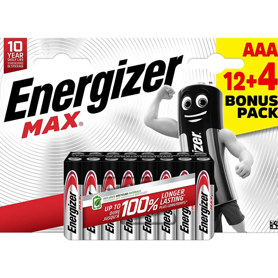 Les packs de piles Energizer Max AAA conservent leur autonomie jusqu’à 10 ans si elles sont entreposées, et leur résistance aux fuites protègent vos appareils des fuites. Avec Energizer, l’énergie est prête quand vous l’êtes.