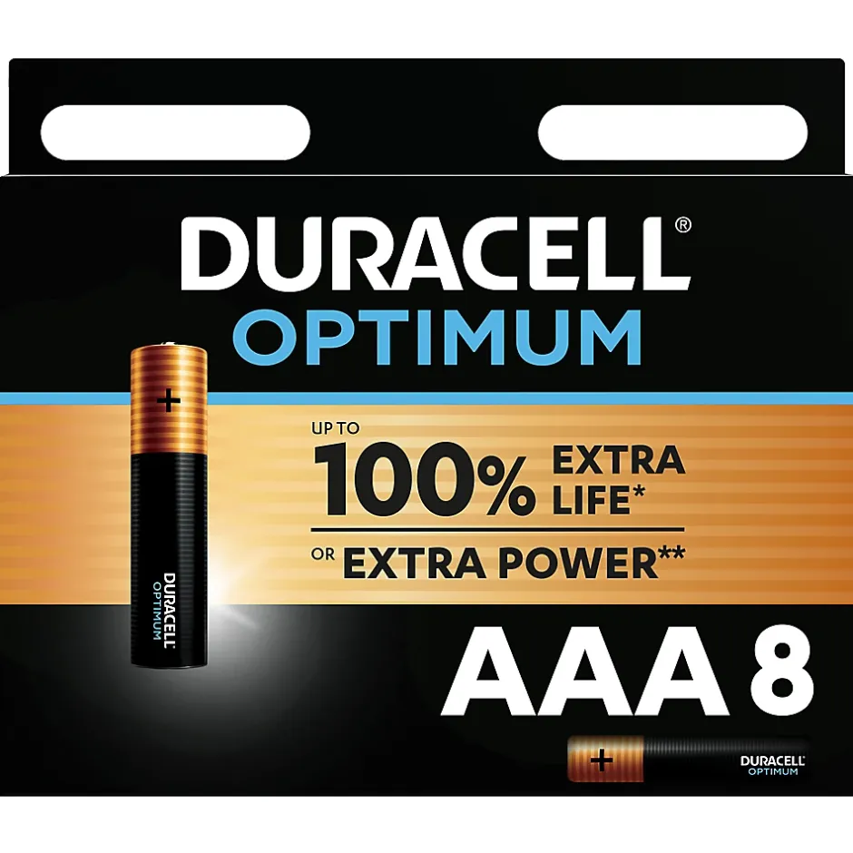 - Les piles Duracell Optimum AAA offrent JUSQU’À 100 % PLUS DE LONGEVITE* à certains appareils ou PLUS DE PUISSANCE** à d’autres pour vous permettre de profiter pleinement de vos appareils.
