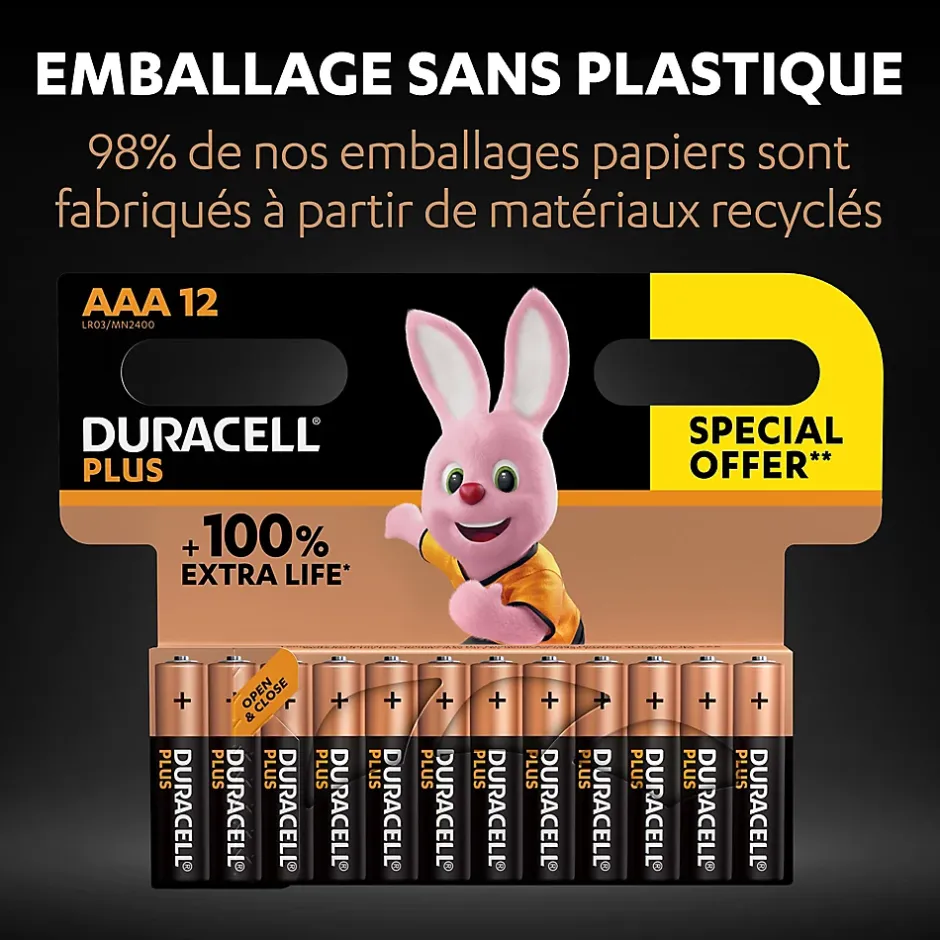 Pile alcaline AAA (LR03) Duracell Plus non rechargeable, lot de 12