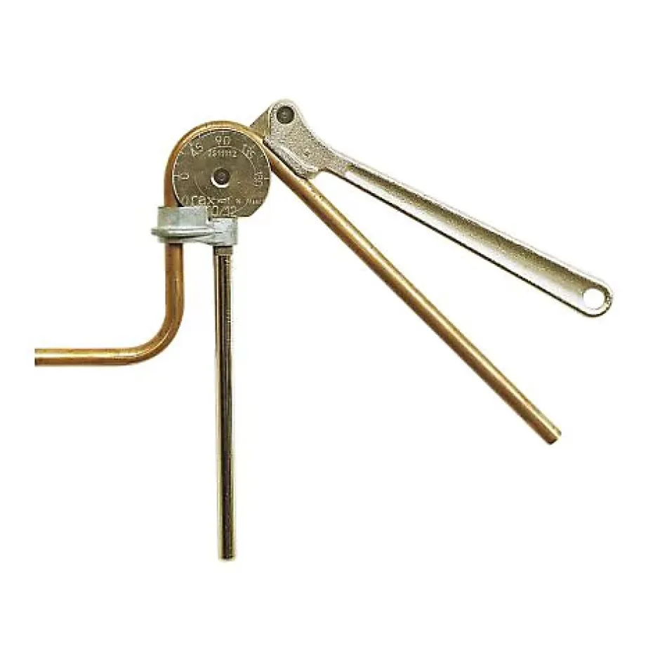 Pour tube cuivre écroui et recuit Ø 18 mm OD, épaisseur 1 à 1,2 mm. Angle de cintrage jusqu’à 180°, graduation de 0 à 180°. Manche en acier, gorge usinée pour un guidage précis du tube.
