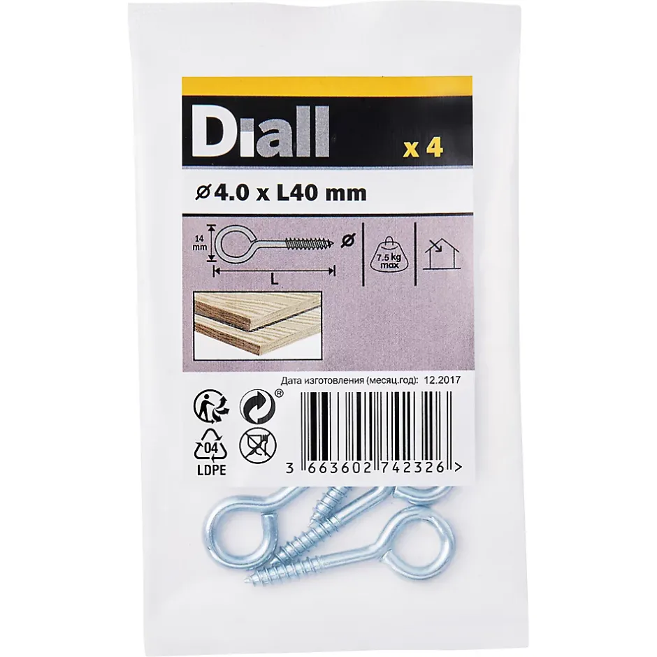Piton à vis en acier zingué 40×17 mm – 4 pièces