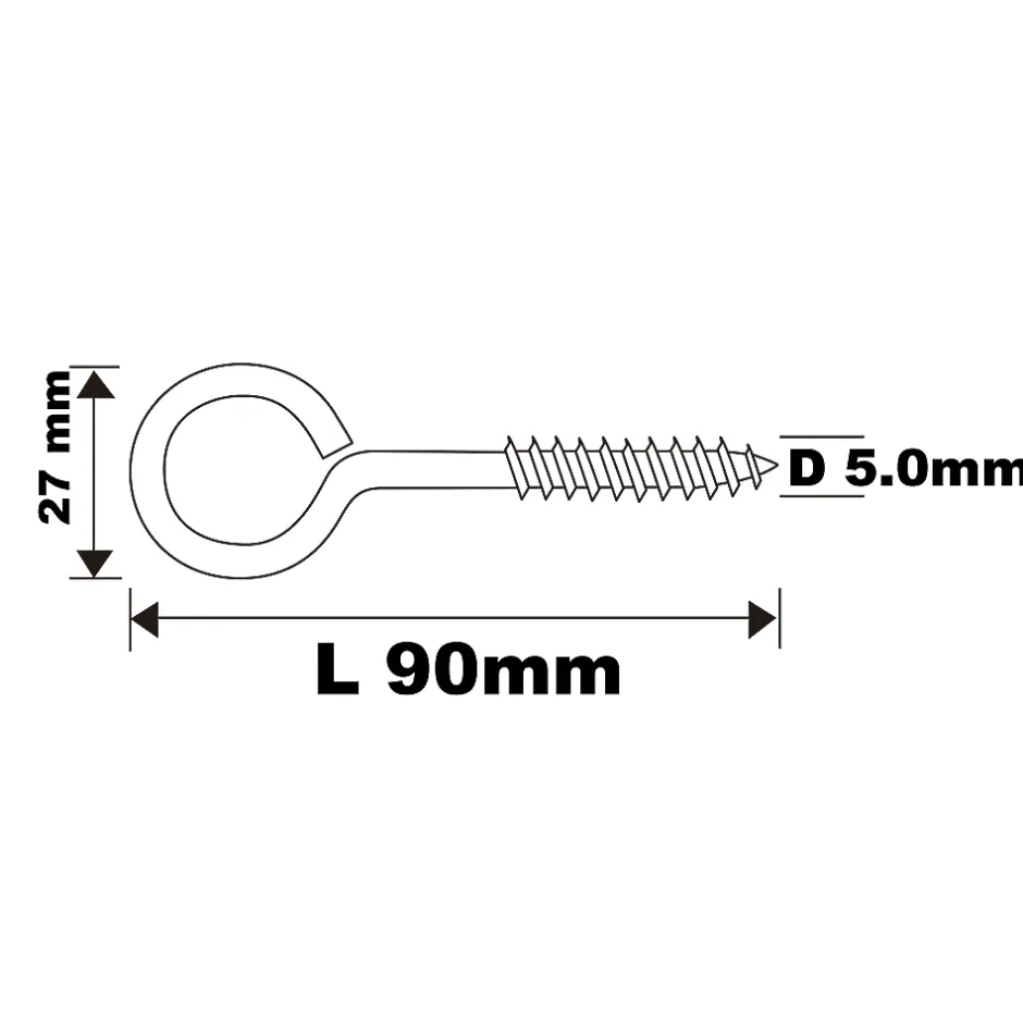 Piton à vis longs en acier zingué 90×32 mm – 5 pièces