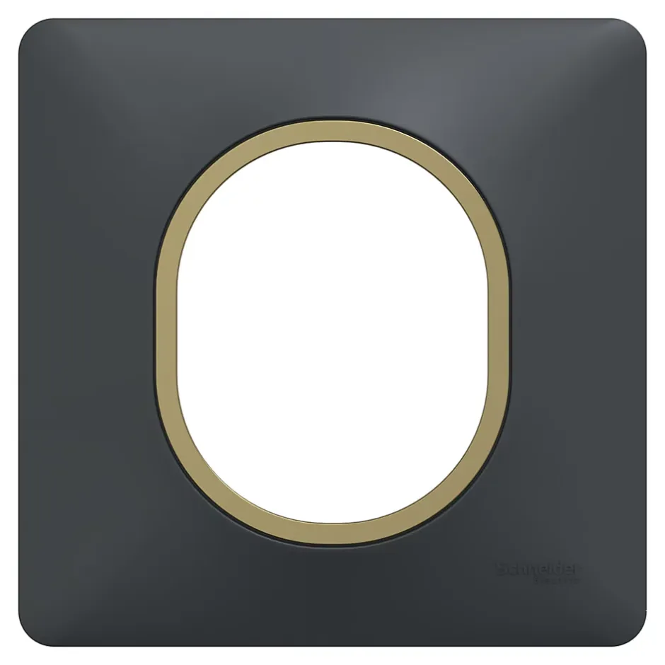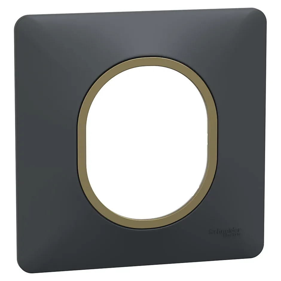 Plaque de finition simple Schneider Electric Ovalis gris anthracite bague laiton