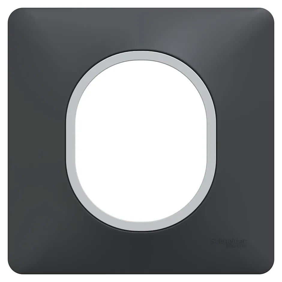 Plaque de finition simple Schneider Electric Ovalis gris anthracite bague argent chromé