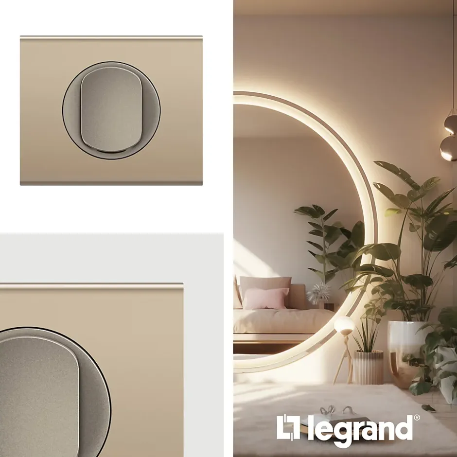Plaque de finition Céliane 2 postes Collection Matière Brute finition Nickel Satiné avec système de rattrapage des défauts du mur