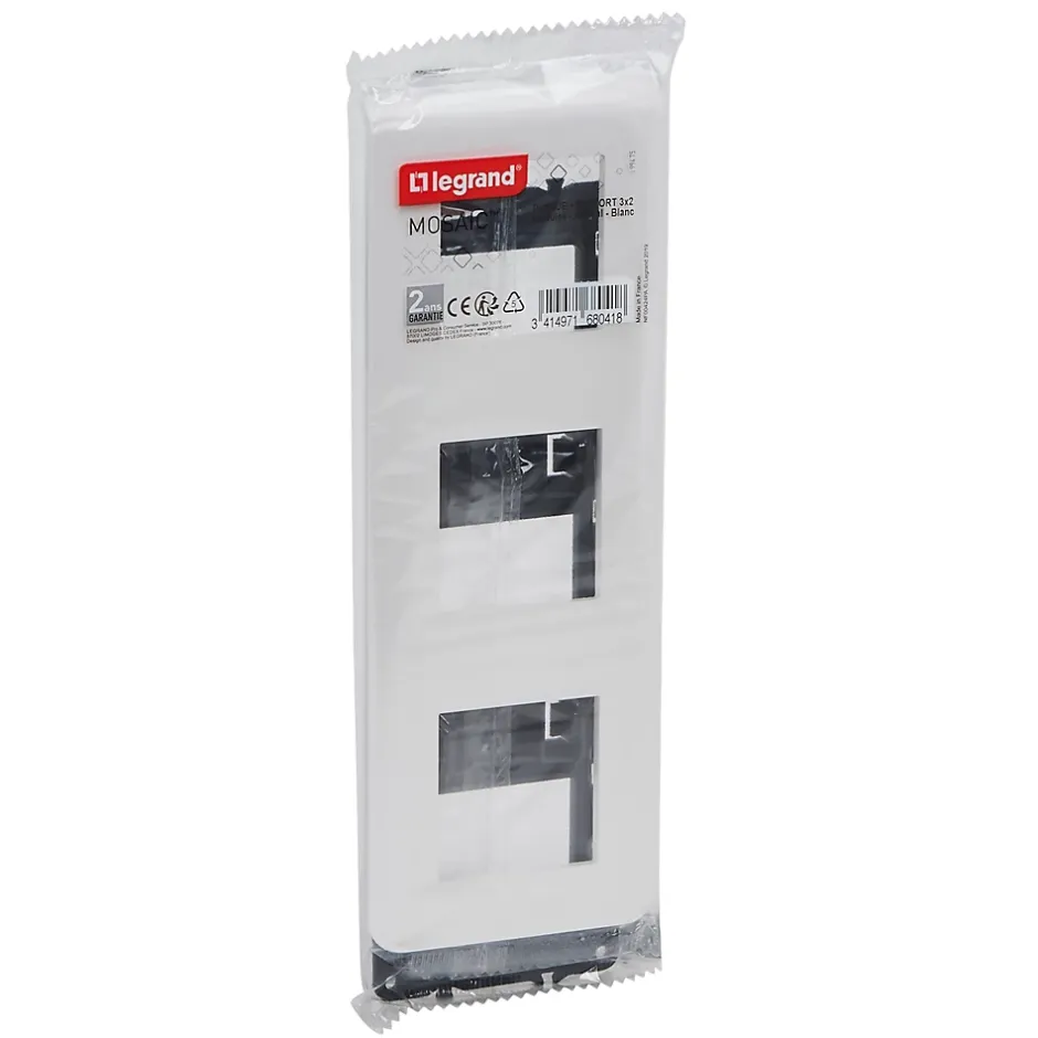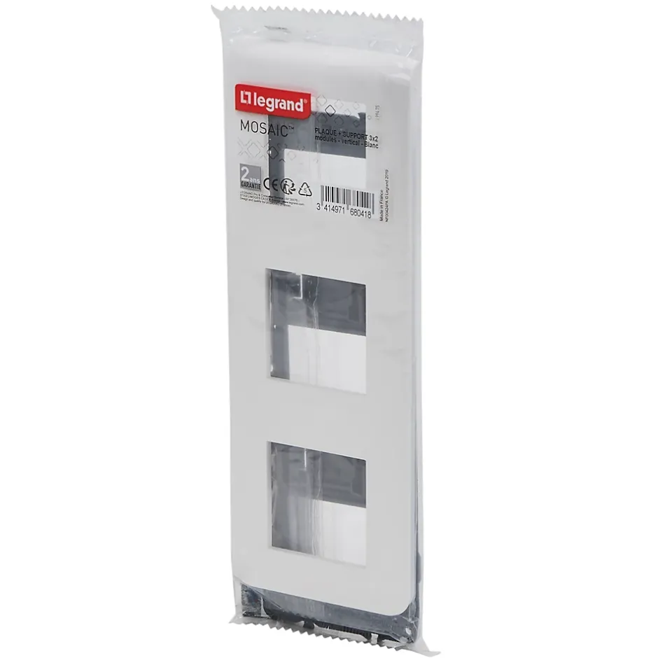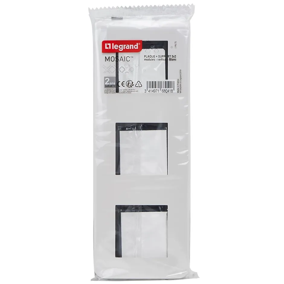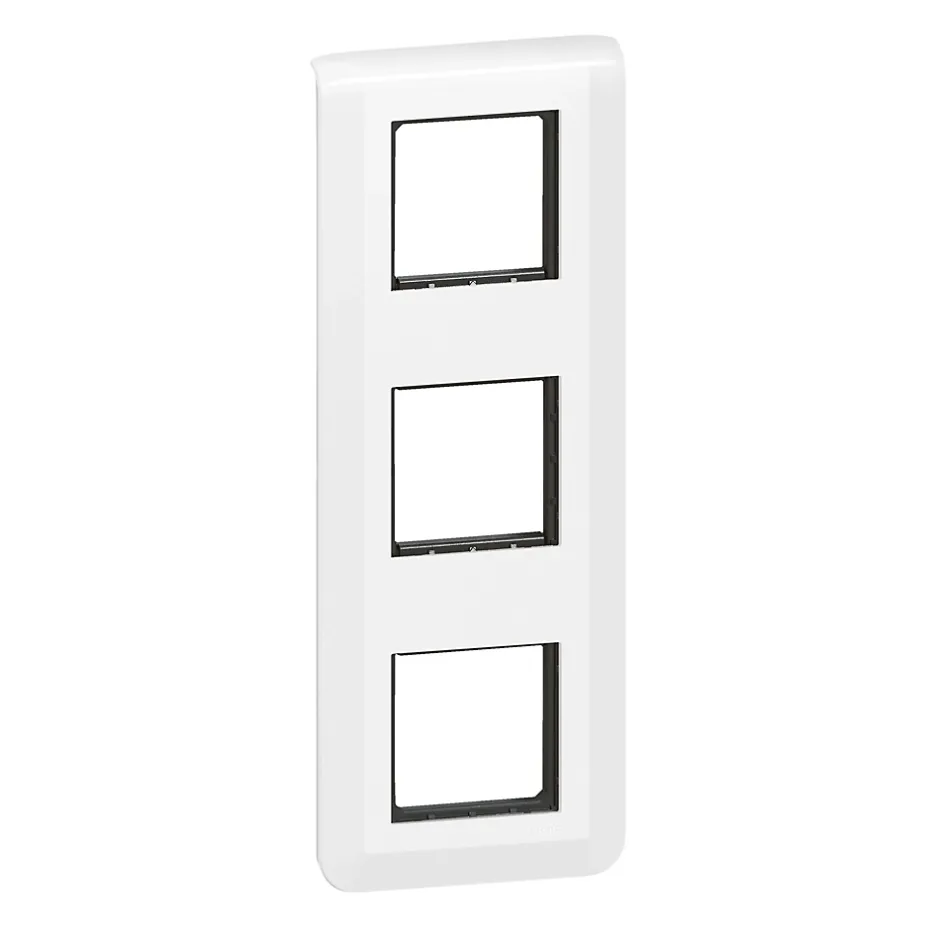 Plaque de finition + support Legrand Mosaïc 3 postes blanc, vertical