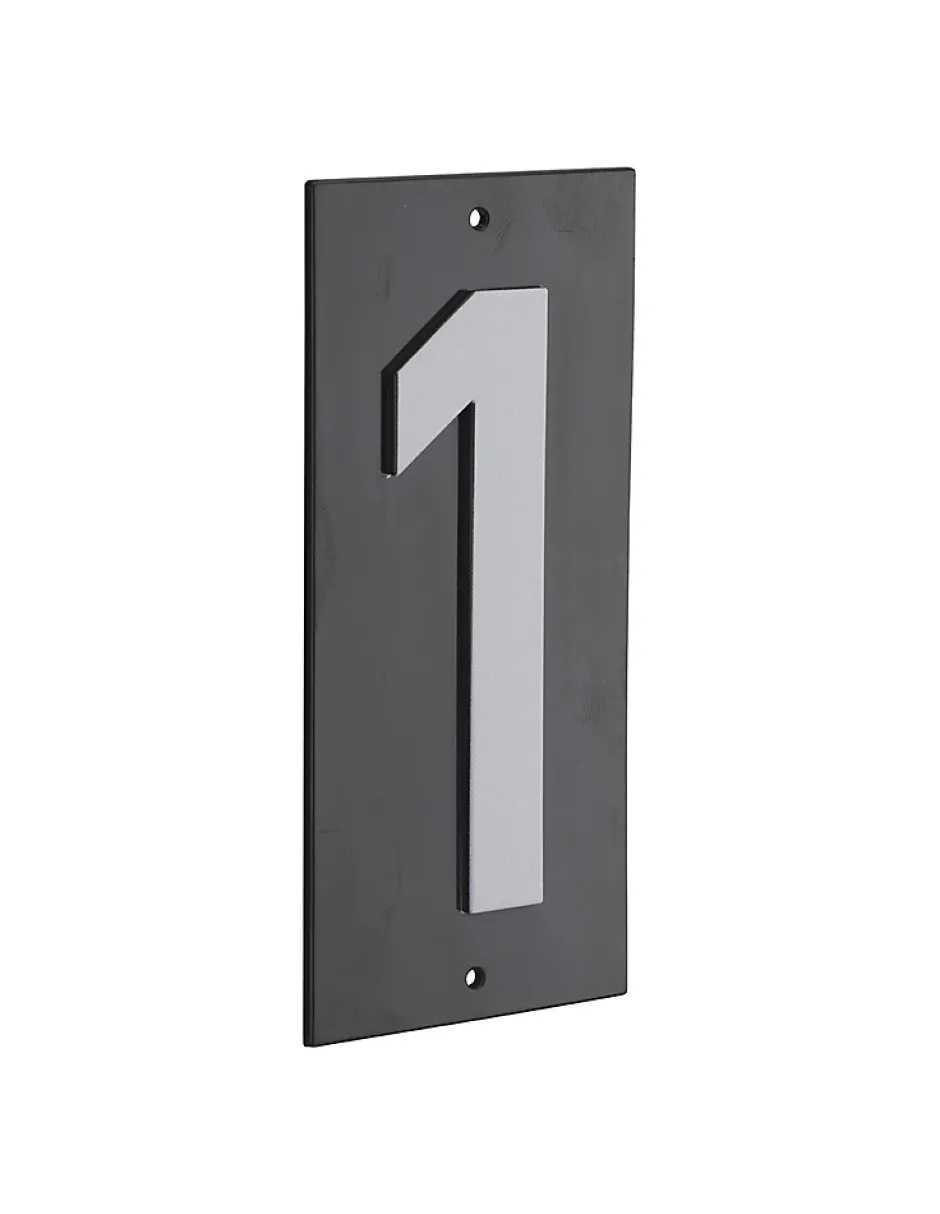 Panneau ABS. Marquage blanc sur fond noir. A visser.