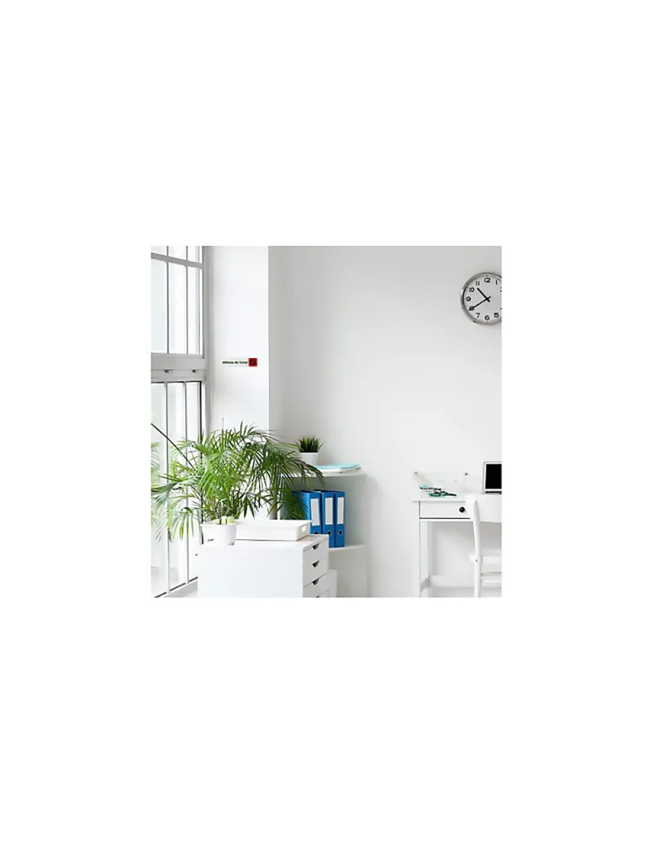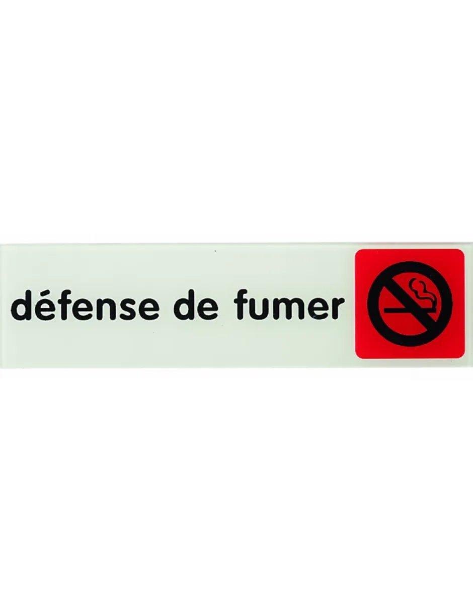 Matériau : Plexiglass, avec une finition brillante pour un aspect élégant et lumineux.Dimensions : Idéale pour un affichage visible, taille standard de 170×45 cmAdhésif : Facile à poser grâce à un adhésif durable, conçu pour coller sur toutes les surfaces lisses (fenêtres, portes, murs).Design : Texte clair et lisible « Défense de fumer », accompagné d’un pictogramme de cigarette barrée, pour une visibilité optimale.Utilisation : Convient pour bureaux, restaurants, magasins, établissements publics, et plus encore.