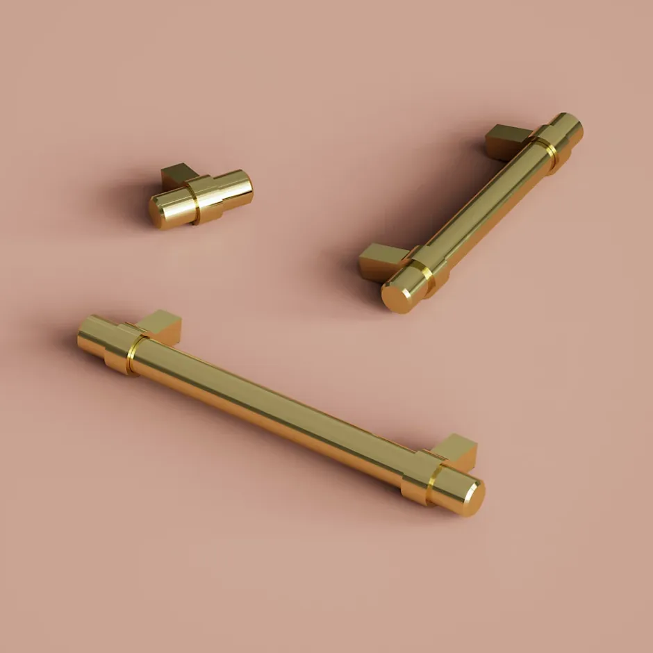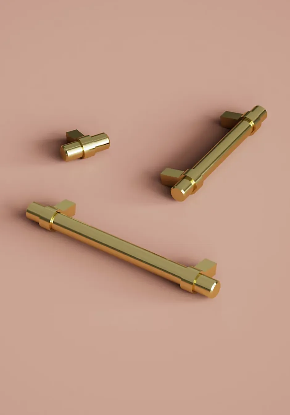 Poignée de meuble en T GoodHome Kerver acier et Zamac effet laiton doré l.168mm x l.18mm x H. 34mm entraxe 128mm