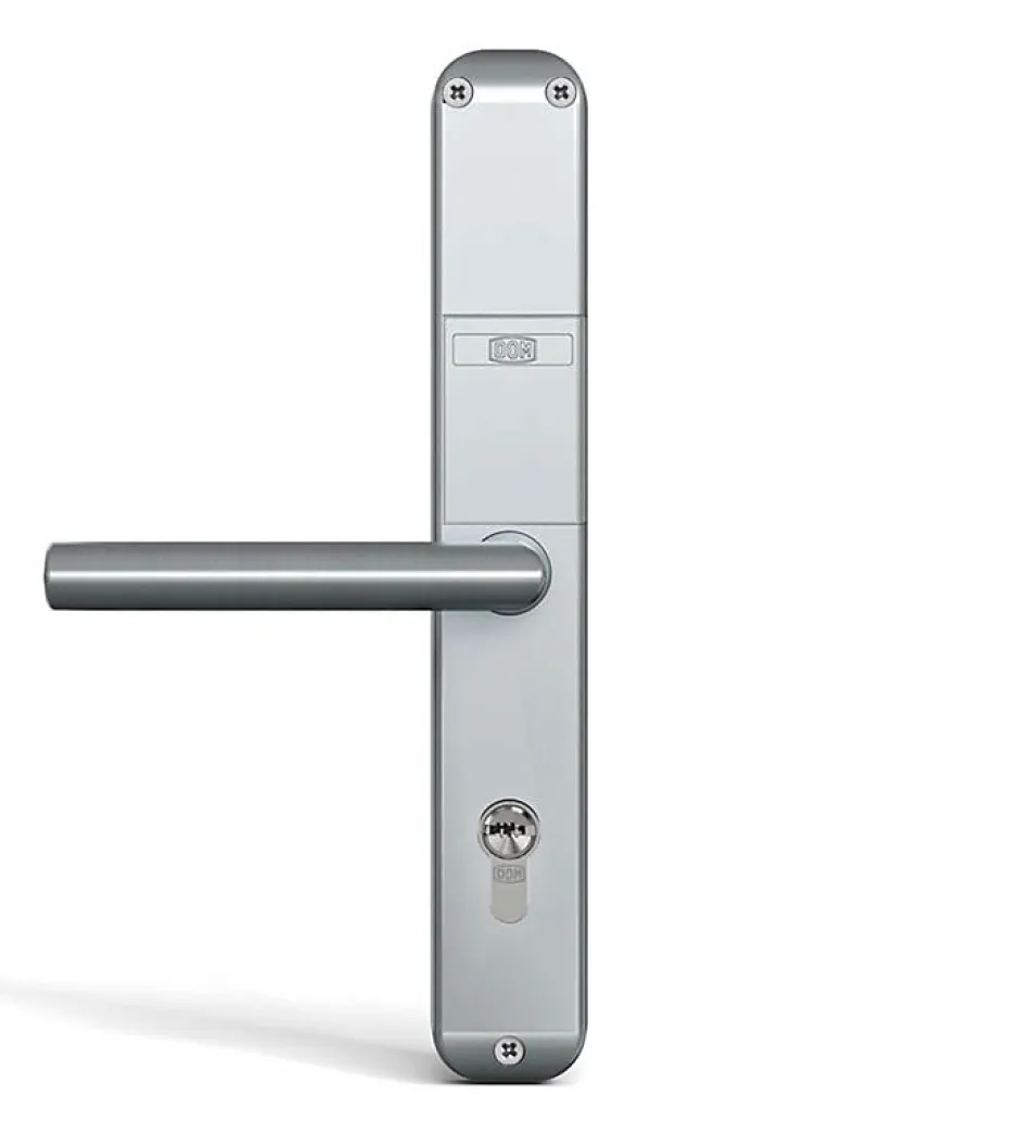 Béquille électronique à code Easykey Slim DOM pour porte intérieure côté droitCaractéristiques de la béquille électronique Easykey Slim DOM :Modèle : Easykey Slim XS40. SD7. IL-20Béquille électronique autonome pour porte intérieureModèle droit (gonds à droite, poignée à droite en poussant la porte)Ouverture sans clé via un clavier numérique (avec marquage Braille)Clavier rétroéclairé avec signaux lumineux (vert/rouge) et sonoresVerrouillage automatique du pêne après 3 secondesJusqu?à 150 codes utilisateurs programmables (4 à 6 chiffres)Blocage de sécurité après 5 codes erronés consécutifsCode administrateur pour ajouter ou supprimer des utilisateursFonction passage libre activable depuis le clavierMémoire EEPROM : les codes restent enregistrés même après remplacement de la pileCylindre de secours possible (non inclus) en cas de batterie à platAlimentation : 1 pile lithium CR-P2 (incluse) ? autonomie jusqu?à 40 000 cyclesSignal de batterie faible (avertissement avant les 500 dernières ouvertures)Poignée réversible, ici pré-montée en version droiteFixation : 5 vis sans câblage électriqueFinition : inox brosséMatériaux : acier, inox, zamakCarré : 7 mmEntraxe : 92 mmÉpaisseur de porte : 40 mmCe que nous aimons dans cette béquille électronique :Ouverture sans clé simple et sécuriséeIdéal pour usage professionnel, tertiaire ou collectifFonctionnement fiable sans câblageJusqu?à 150 utilisateurs configurablesClavier rétroéclairé + lecture braillePose rapide, aucun démontage nécessaireModèle droit pour installation immédiate côté droit