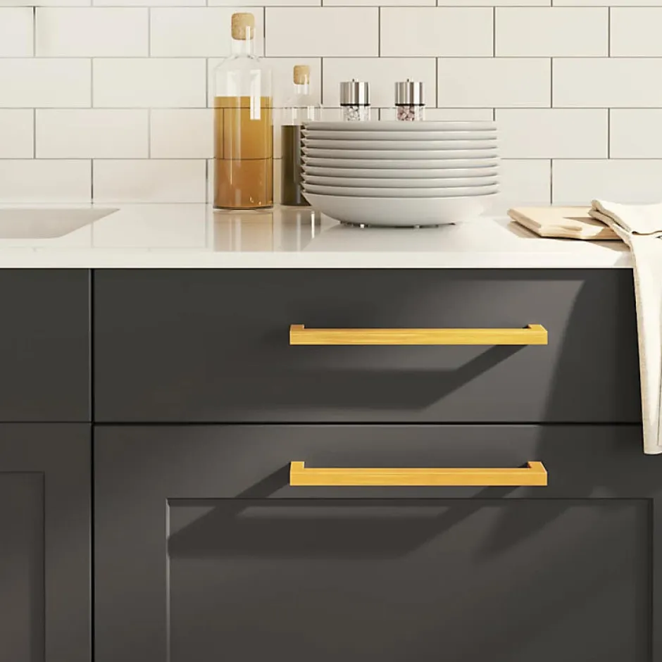 - Finition dorée intemporelle anti-traces, vis découpables pour s’adapter à différentes épaisseurs, conception tube carré, visserie incluse.