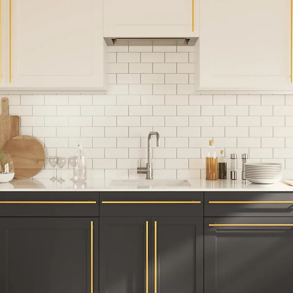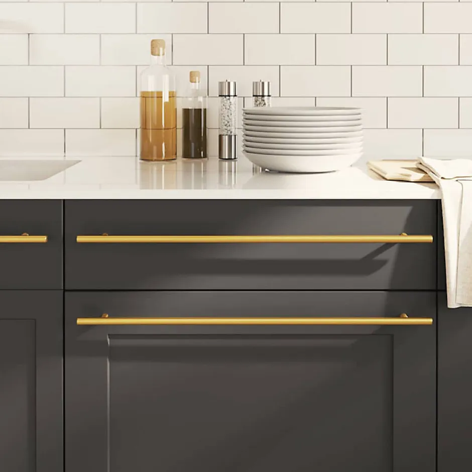 - Design moderne et élégant avec finition dorée, kit de 5 poignées en acier inoxydable très résistant à la corrosion, vis découpables pour s’adapter à différentes épaisseurs de panneau.