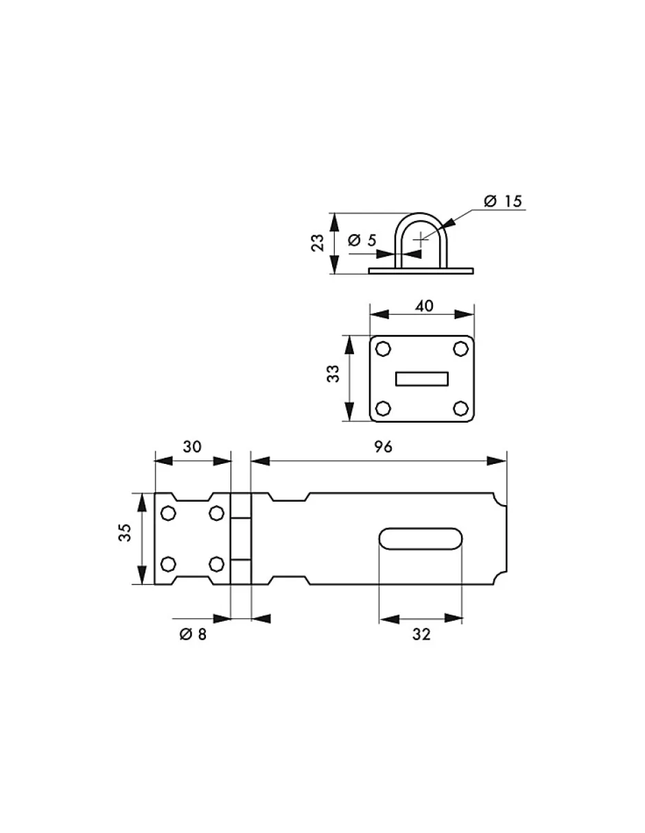 Porte-cadenas Thirard en acier zinqué pour fermeture de coffres ou portes. 100mm. Recouvrement des vis de ce porte cadenas en position fermée/cadenassée.