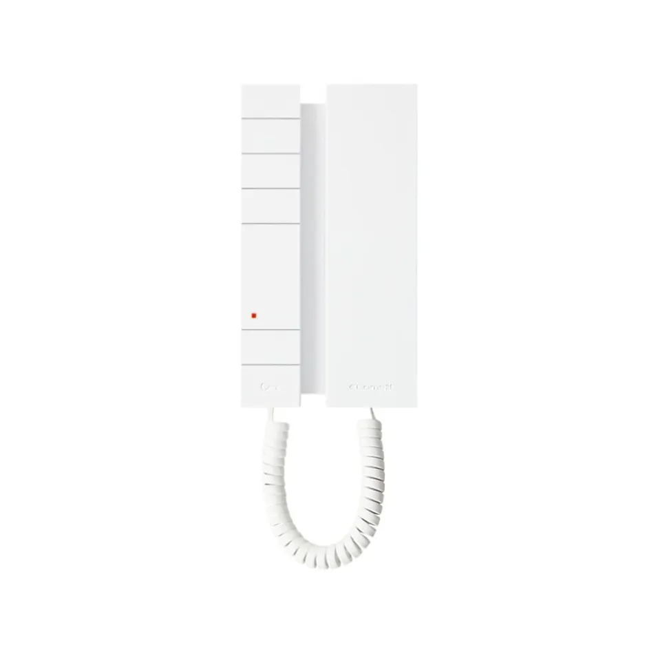 Poste audio intérieur mini 5 boutons S2 – 2719W – ComelitLe Poste audio intérieur mini 5 boutons S2, modèle 2719W, de COMELIT est équipé d’un combiné qui vous permet de passer et de recevoir des appels audio avec les unités extérieures. L’utilisateur a la possibilité de régler le volume de l’appel entrant selon ses préférences. Il peut aussi couper la sonnerie pour ne pas être dérangé. De plus, ce matériel dispose d’une fonction de secret de conversation permettant de rendre une conversation privée en désactivant le haut-parleur extérieur.Par ailleurs, si vous avez manqué un appel entrant, le poste audio mini peut être configuré pour répéter l’appel à intervalles réguliers jusqu’à ce qu’il soit répondu ou jusqu’à ce que l’appelant décide de raccrocher. Cet accessoire de communication est équipé de boutons pour l’ouverture de porte à distance.Ce poste audio est aussi doté d’une série de boutons dédiés à l’ouverture de porte à distance, qui peuvent être programmés. Ils permettent aux utilisateurs d’activer le mécanisme de déverrouillage de la porte depuis l’intérieur de leur domicile.En plus des boutons ouvre-porte, il dispose de 4 autres boutons principalement destinés à la fonction d’intercommunication. L’un d’entre eux peut être ‘libéré’ par contact F/N.O (fermé/normalement ouvert). Cela signifie que ce bouton est utilisable avec une connexion électrique externe pour activer ou désactiver une fonction spécifique. Par exemple, en connectant un capteur ou un interrupteur à ce bouton, vous pouvez déclencher une action spécifique lorsque le contact est fermé ou ouvert.L’autre grand avantage de ce poste audio intérieur est qu’il est compatible avec les autres systèmes d’interphonie de Comelit.Caractéristiques principales :Doté de boutons ouvre-porteComprend des boutons d’intercommunicationDimensions : 105x191x28 mm.Equipé d’une led pour signalisations diverses