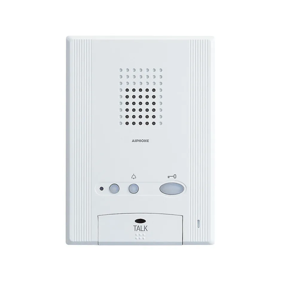 Poste audio mains libres – GT-AIP/GT1A – AIPHONELe Poste audio GT-AIP/GT1A d’AIPHONE est un équipement conçu pour vous permettre de répondre aux appels provenant de la platine installée à la porte de votre bâtiment. Vous pouvez ainsi gérer efficacement les interactions avec vos visiteurs tout en assurant la sécurité de votre domicile ou de votre lieu de travail. Le dispositif permet une communication mains libres. Vous bénéficiez ainsi d’une totale liberté de mouvement durant la conversation.Le GT-AIP/GT1A est doté de touches de commande clairement identifiées. Elles permettent de prendre la parole, de déverrouiller l’accès à distance, mais également de commander d’éclairage pour plus de commodité. Une autre fonction peut être attribuée à une touche auxiliaire en cas de besoin.Ce poste dispose d’un contact de sonnerie spécialement conçu pour la porte palière. Vous pouvez ainsi avoir une sonnerie distincte pour les visiteurs à la porte principale et ceux qui sonnent à la porte palière. C’est pratique pour la gestion des accès et assurer la sécurité globale de l’immeuble. Vous avez aussi la possibilité de régler la sonnerie et le volume d’écoute pour une expérience adaptée à vos préférences. Vous pouvez savoir instantanément si la sonnerie est activée ou désactivée grâce à un voyant de coupure intégré à ce poste.Caractéristiques principales :Extra plat : 3,2 cm d’épaisseurTouche de prise de parole (TALK)Touche d’ouverture de porteTouche de commande d’éclairageTouche de commande auxiliaire (option)Réglage de la sonnerie et coupureVoyant de coupure sonnerieRéglage du volume d’écouteConnexion automatique des câblesPossibilité d’installer 2 postes audio et 2 postes vidéo par appartementContact sonnerie porte palière, sonnerie différente de l’appel portierGestion des professions libérales