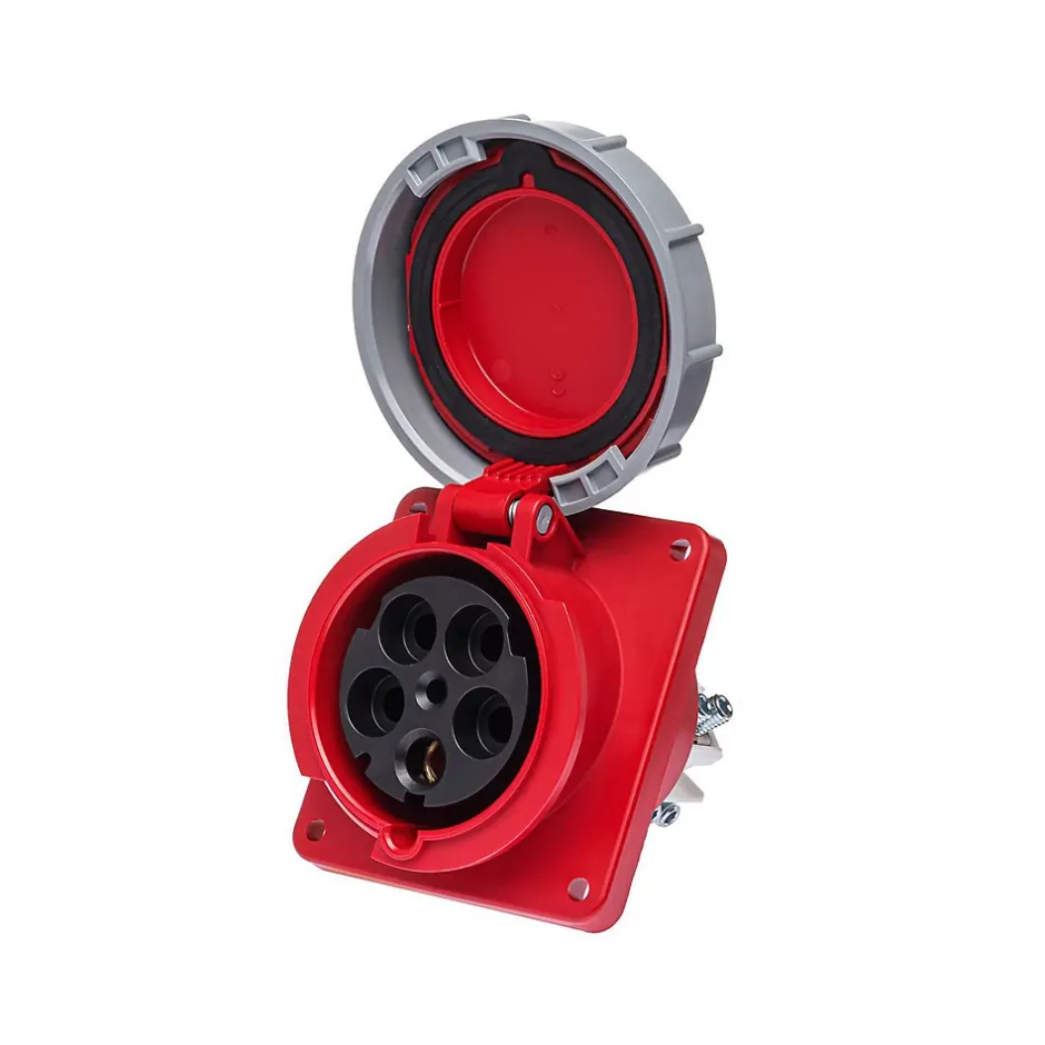 Prise femelle à encastrer tétrapolaire 5x125A – sans fil piloteConçue pour les installations industrielles exigeantes, cette prise femelle possède un certificat d’étanchéité renforcée IP67. Cette prise encastrable 125A fonctionne en tripolaire (3P+N+T) sur une tension de 380V.Le raccordement de cette prise se fait par borne à vis avec une section de câble maximum de 70mm² en câble rigide et 50mm² en câble souple.Cette prise n’intègre pas de fil pilote. Elle reste compatible avec les prises mâles disposant d’un fil pilote mais la fonction contact pilote ne pourra pas être assurée.Sur devis nous pouvons vous câbler un coffret de prise monophasé/triphasé sur mesureL’essentiel sur la Prise femelle à encastrer 380VFabriqué en EspagneQualité professionnellePrise européenne compatible toute marque (Legrand; Schneider…)Vis de fixation en inox à commander séparémentÉtanchéité renforcée IP67