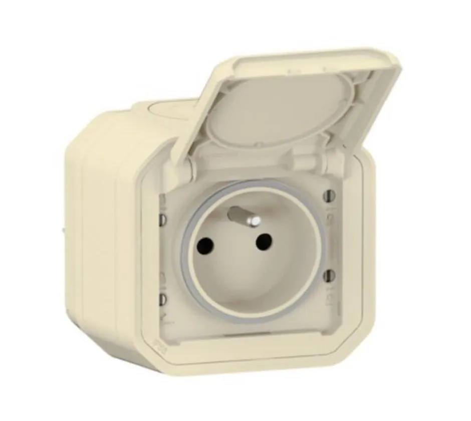 Prise 2 pôles avec terre Legrand Plexo sable en saillie