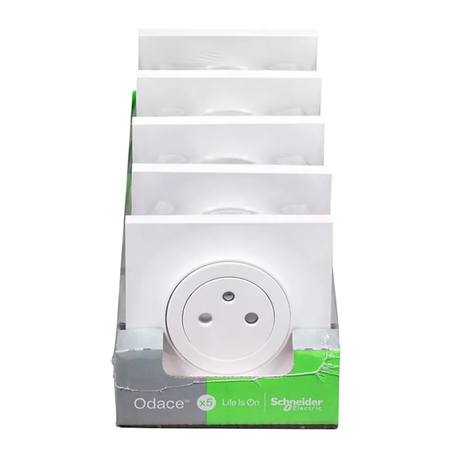 Prise 2 pôles + terre affleurante Odace Schneider Electric blanc complet – lot de 5 pièces