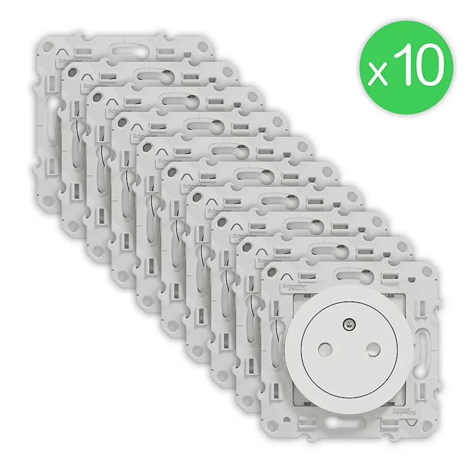Prise 2 pôles + terre Schneider Electric Odace blanc à compléter 10 pièces