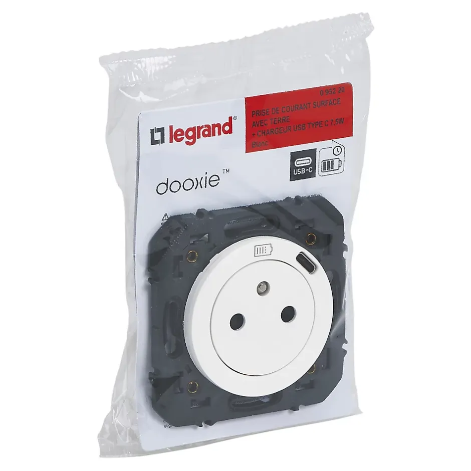 Prise 2 pôles + terre + Prise USB-C Legrand Dooxie blanc carrée