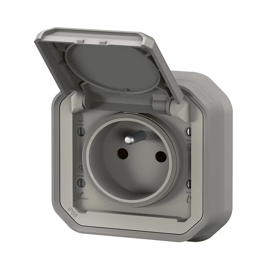 Prise Legrand Plexo gris à griffes