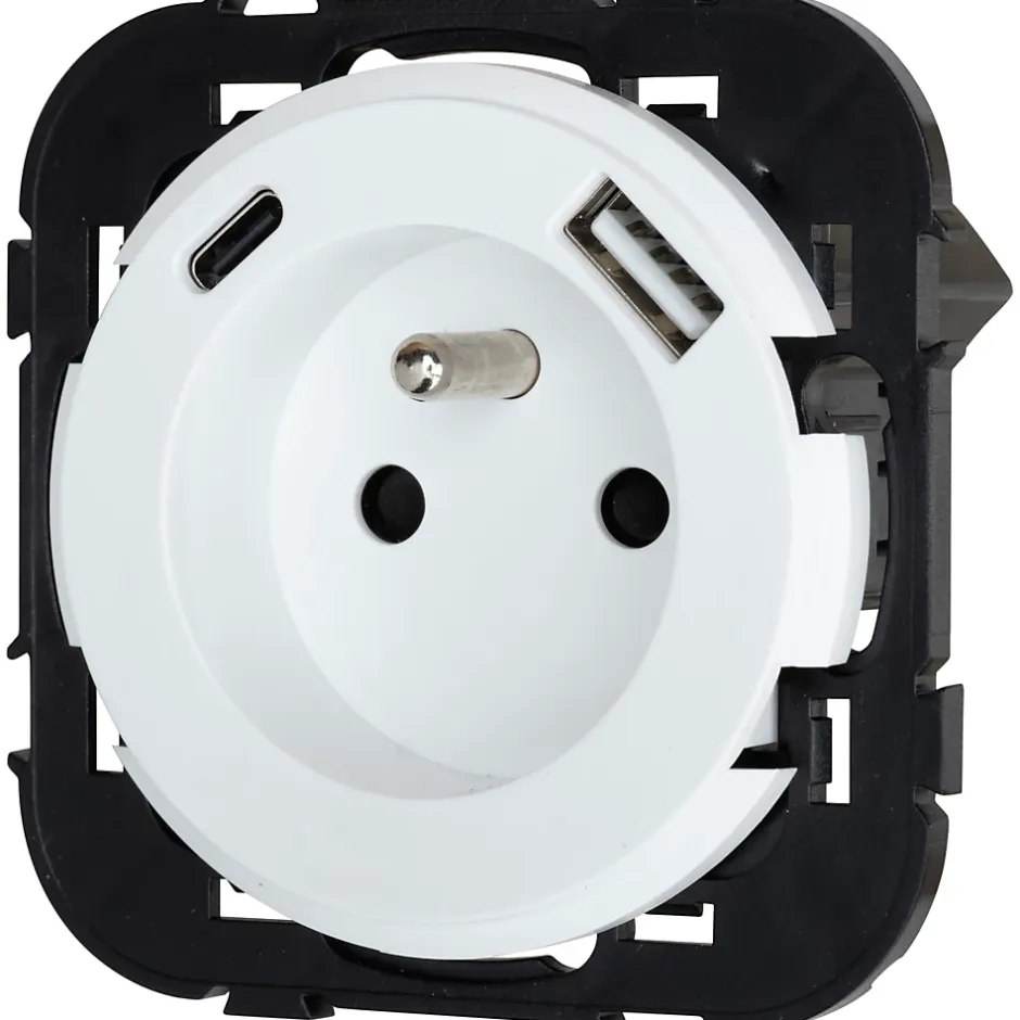 Prise avec terre Jacobsen Espen blanc à composer, 2xUSB-A+C