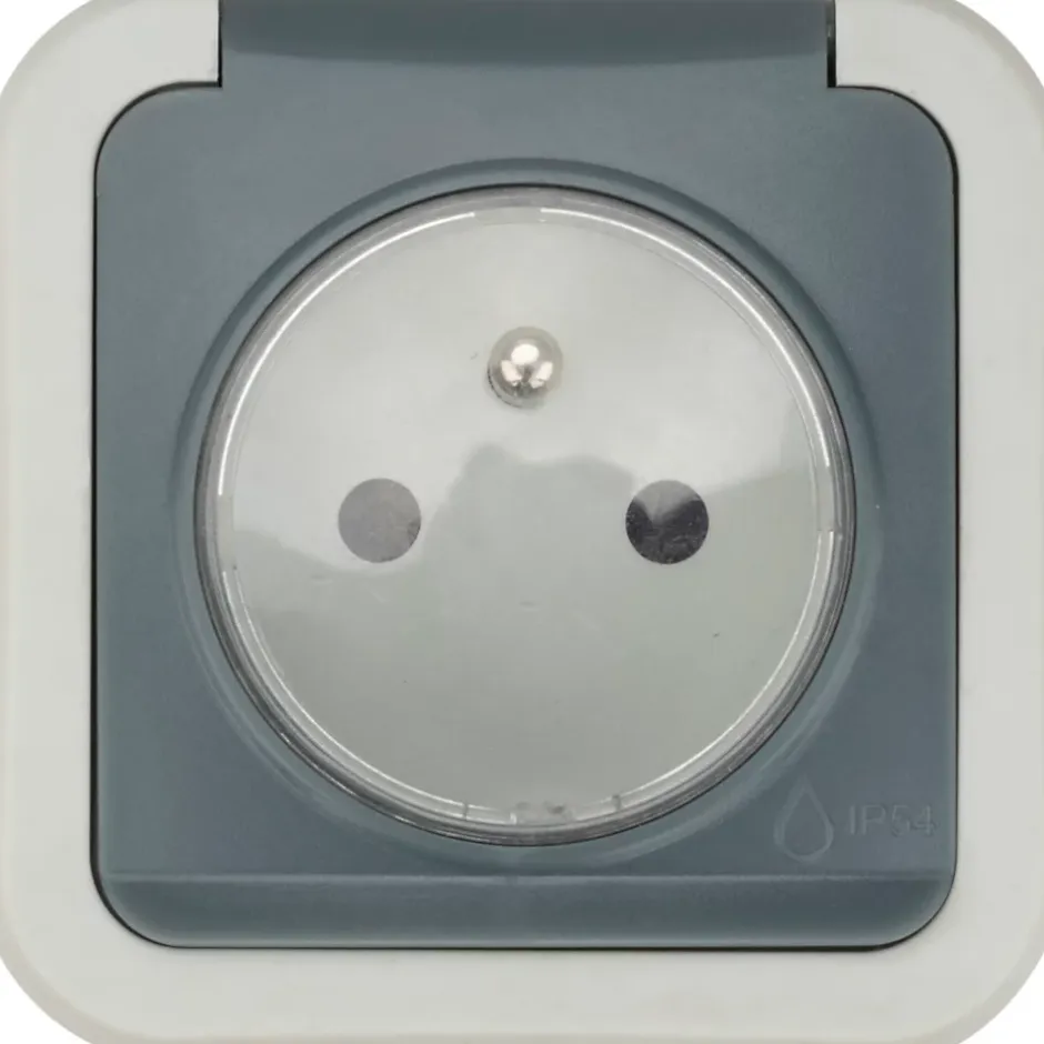 Prise avec terre étanche en saillie Jacobsen gris complet