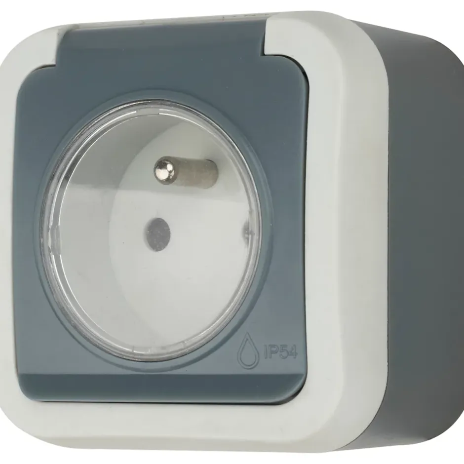- Prise imperméable avec protection de sécurité, indice de protection IP55, robuste et résistante aux chocs, pour une alimentation électrique sûre en extérieur
