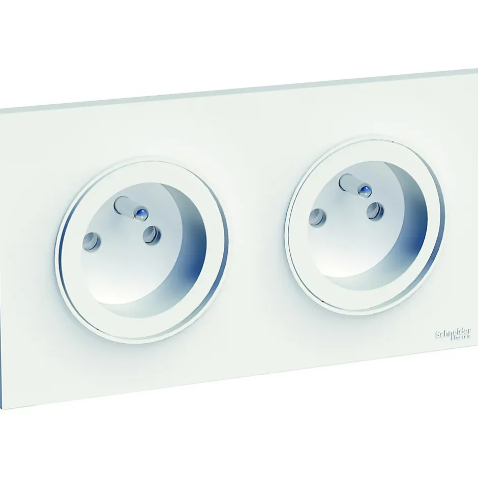 Prise de courant double avec terre complète Schneider Electric Odace blanc