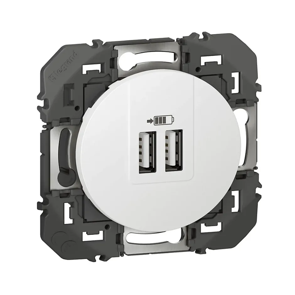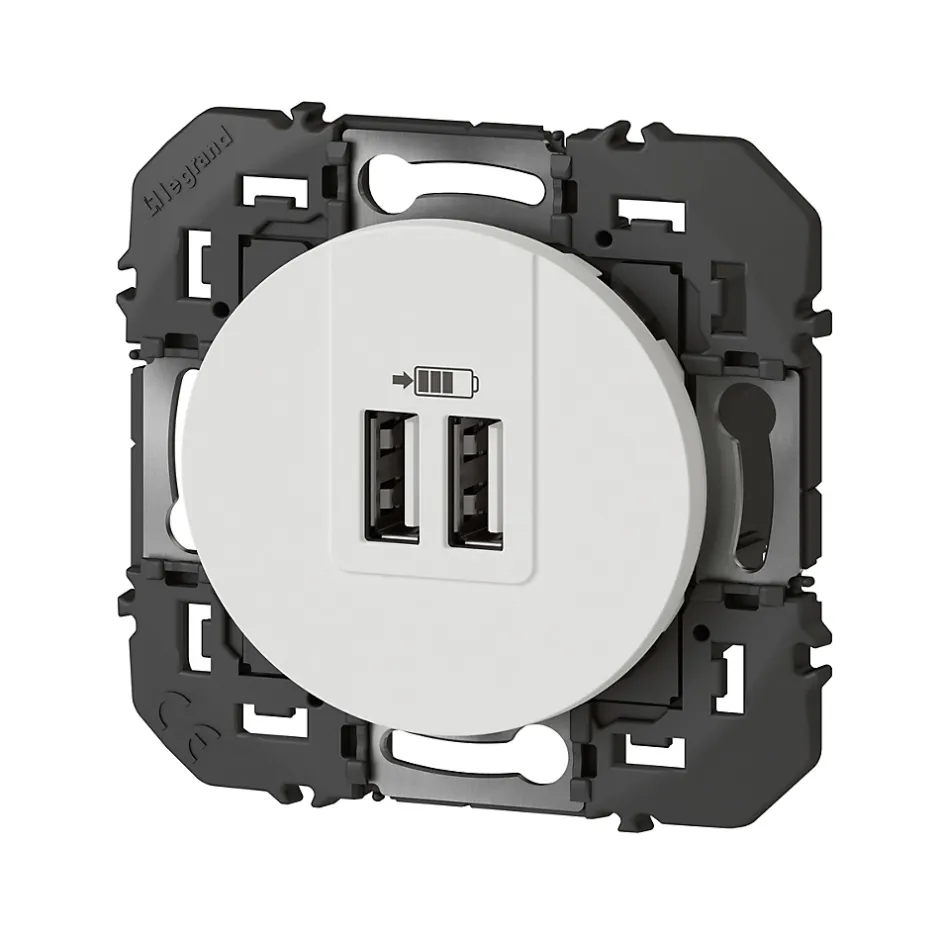 Prise double USB-A Legrand Dooxie blanc carrée