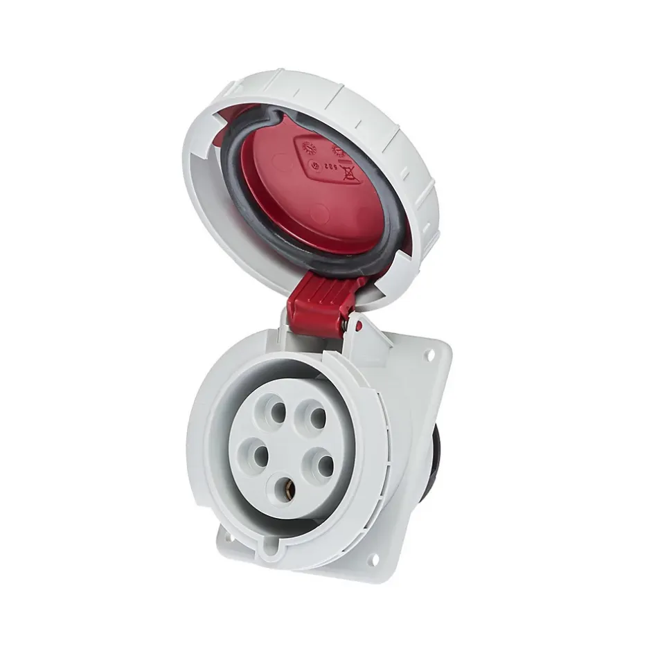 Prise femelle à encastrer tétrapolaire 5x32AConçue pour les installations industrielles exigeantes, cette prise femelle possède un certificat d’étanchéité renforcée IP67. Cette prise femelle encastrable 32A fonctionne en tripolaire (3P+N+T) sur une tension de 380V.Le raccordement de cette prise se fait par borne à vis avec une section de câble maximum de 10mm² en câble rigide et 6mm² en câble souple.Pour le câblage d’un coffret de prise, en 32A on utilise généralement du câble souple 6mm² avec embouts de câblage.Cette prise encastrable peut être montée sur un coffret de prise à personnaliser, elle est compatible avec les coffrets IDE Star.Sur devis nous pouvons vous câbler un coffret de prise monophasé/triphasé sur mesureL’essentiel sur la Prise femelle à encastrer 380VFabriqué en EspagneQualité professionnellePrise européenne compatible toute marque (Legrand; Schneider…)Vis de fixation en inox à commander séparémentÉtanchéité renforcée IP67