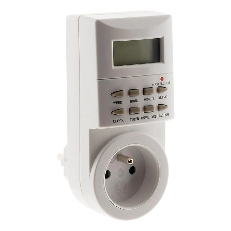 Caractéristiques du programmateur hebdomadaire digital – Otio :Modèle : programmateur heddomadaire digital49 programmes simples disponibles pour tous types d’appareils électriques1 à 8 cycles marche/arrêt hebdomadaires personnalisablesPuissance maximale : 3680W sous 230VFonction déclenchement aléatoire pour plus de sécurité et d’efficacitéProgrammation à la minute près pour une précision optimale 16 options différentes de déclenchement des cyclesÉcran digital clair et facile à utiliserCompatible avec la plupart des appareils électriques domestiquesDesign compact et ergonomiqueLe programmateur hebdomadaire digital offre une flexibilité exceptionnelle grâce à ses 49 programmes simples et ses 16 options de déclenchement, permettant une gestion précise de vos appareils électriques !Sa programmation à la minute près garantit un contrôle optimal, tandis que la fonction de déclenchement aléatoire augmente la sécurité en simulant une présence. Facile à utiliser et compatible avec une grande variété d’appareils, il est idéal pour réduire votre consommation énergétique et automatiser votre quotidien.