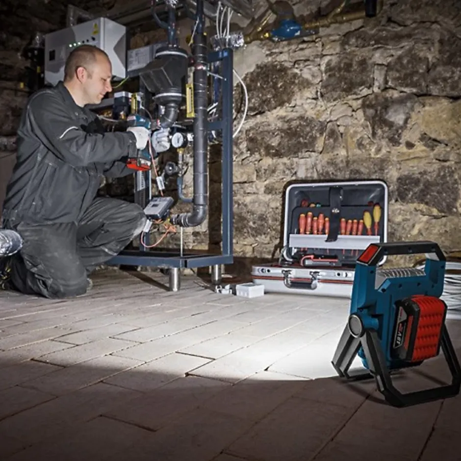 Le projecteur 18 V polyvalent avec puissante LED produisant jusqu’à 1 900 lumens pour un éclairement parfait sur votre chantier. Il est idéal pour éclairer des espaces de travail complets pendant toute une journée.
