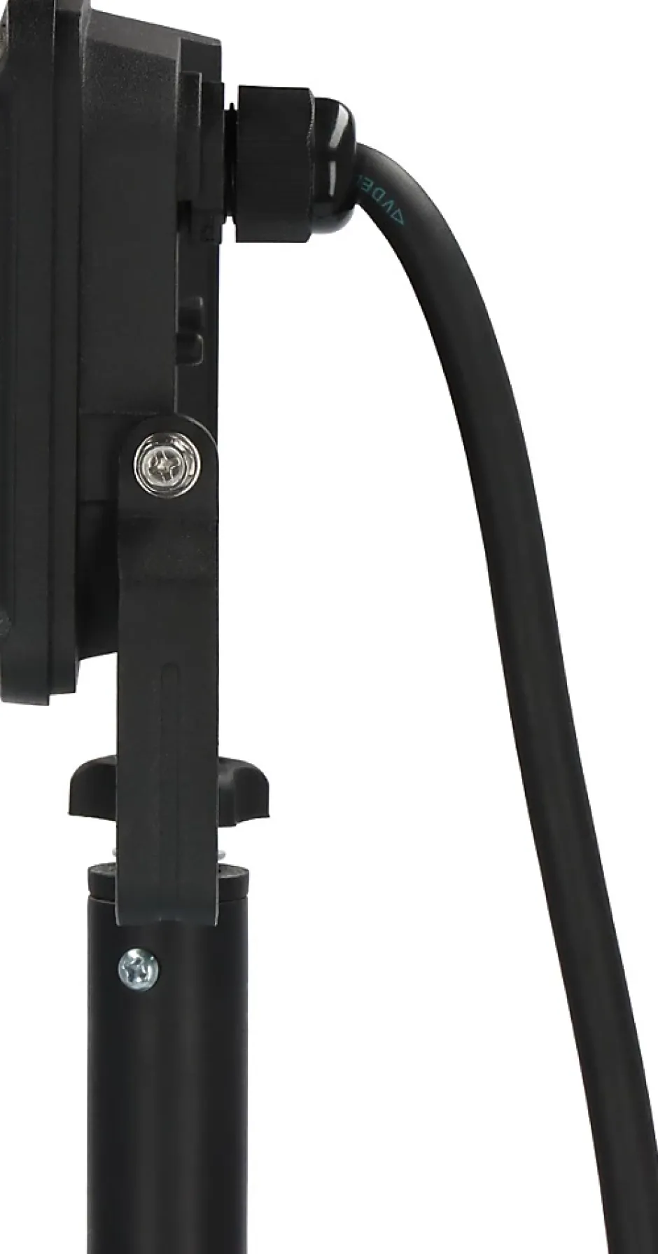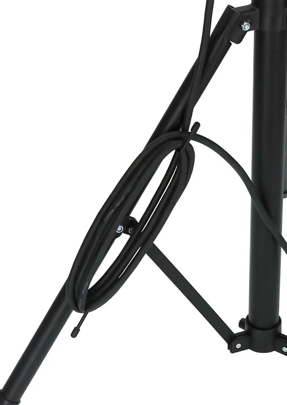 - Trépied télescopique réglable jusqu’à 1,80 m avec range-câble intégré et câble H07RN-F 3G1,0 de 3 m.