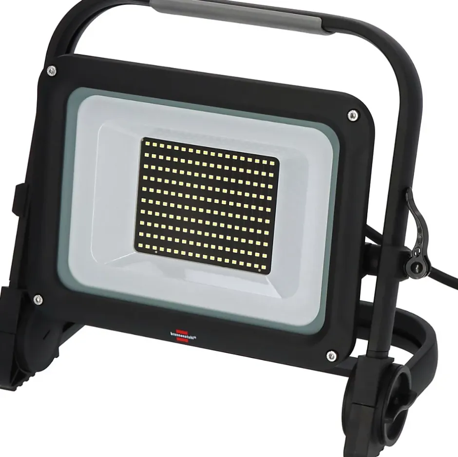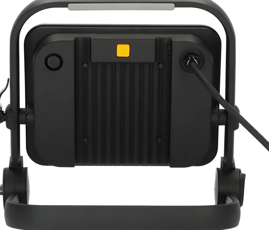Projecteur de chantier LED portable JARO 14060 M idéal pour l’extérieur et les travaux de bricolage. Puissance 100 W et flux lumineux 11 500 lm, température de couleur 6500K. Indices de protection IP65 et IK08 pour résistance aux intempéries et aux chocs. Boîtier en métal (aluminium robuste) avec support en acier muni d’angles de protection et perçages pour montage sur trépied. Interrupteur marche/arrêt avec 3 modes d’éclairage (100 % / 50 % / 25 %). Câble H07RN-F 3G1,0 en néoprène de 5 m, vitre frontale en verre de sécurité. Classe de protection I, tension nominale 220–240 V, fréquence 50/60 Hz. Dimensions : hauteur 35 cm, longueur 9,50 cm, largeur 37 cm; poids 3,23 kg.