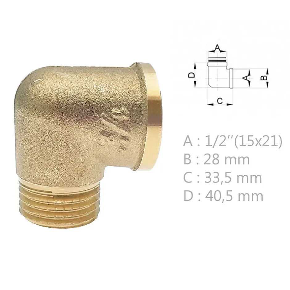Raccord laiton coudé 90° mâle femelle à visser Vendu à la pièce ou en lot de 5 et 10 raccords. Plusieurs diamètres de filetages disponibles. CARACTÉRISTIQUES : Raccord coudé 90°C égal à visser en laiton. Raccordement mâle femelle. Utilisation dans les installations de chauffage et de systèmes d’eau chaude et froide. Pression maximale : 1,0 MPa. Température maximale : 100°C. À NOTER : pas de livraison en Corse ou sur les îles.