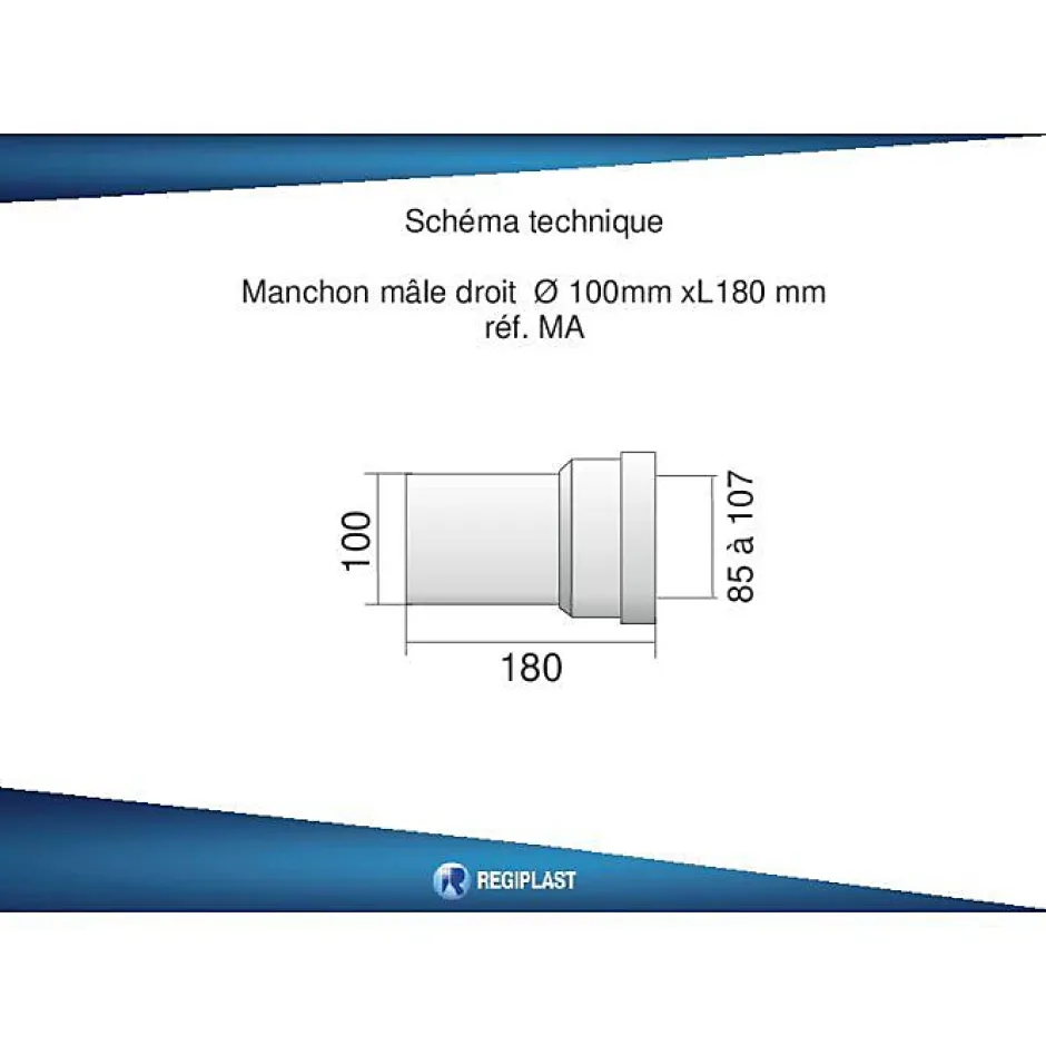 Pipe droite mâle de 100mm, en couleur blanche, parfaite pour vos installations sanitaires. Assurez une connexion fiable et durable.