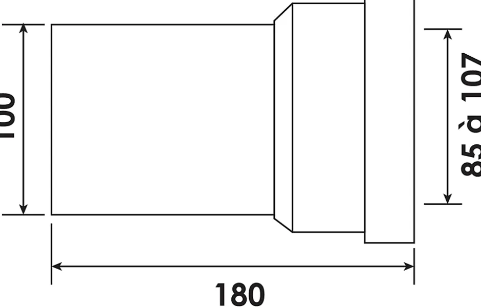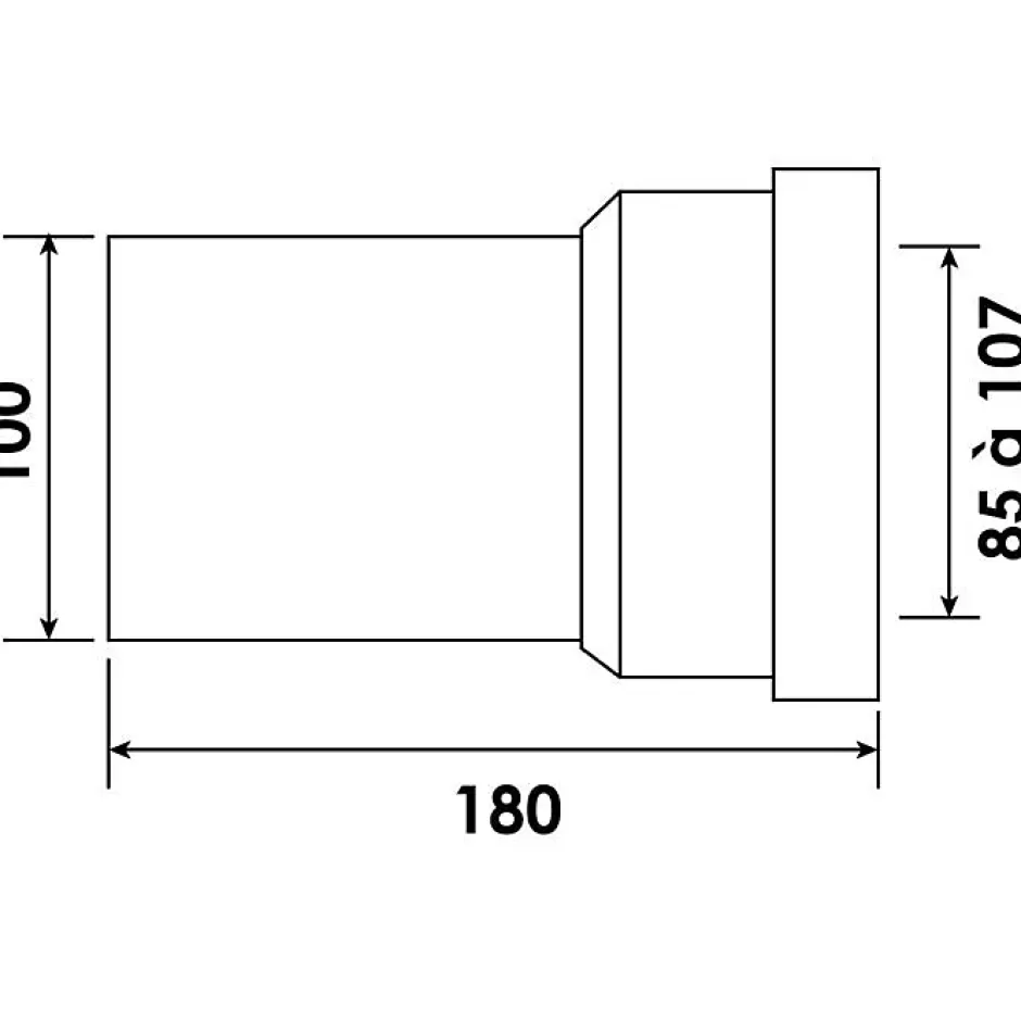 - Pipe de WC sortie droite longueur 190mm D100mm étanchéité sur le WC grâce au joint à lèvre en néoprène