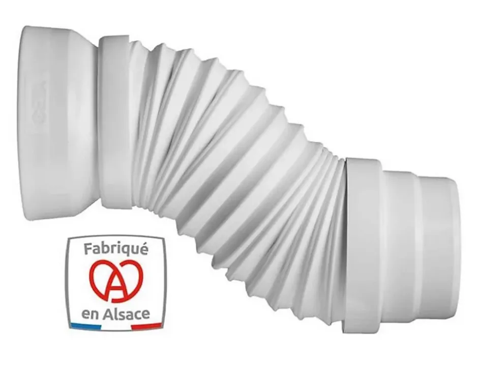 – Raccord WC extensible MULTIDROIT – Matière: polyoléfine et ABS- Coloris: blanc- Finition: brut- Aspect: spiralé- Forme: cylindrique – Tube d’évacuation extensible semi rigide- Spécialement étudié et fabriqué pour une utilisation sur WC sur pied en sortie arrière horizontale- Avec embout supérieur en polyoléfine et embout inférieur en ABS- Sans retenue, sa structure spiralée lui permet de s’adapter en longueur – Installation rapide, il peut se monter facilement sans changer ou déplacer la céramique- Etanchéité durable – Robuste grâce à sa conception en polyoléfine, matière inaltérable- Bonne résitance aux solvants- Trés bonne résistance aux acides et excellente aux alcalis- Facile à mettre en place- Fabriqué en France, en Alsace Dimensions et poids: – Largeur: 127 mm- Longueur mini / maxi: 180 à 380 mm- Diamètres: 93 et 100 mm- Poids: 0,3 kg Autres données: – Raccordement céramique: Ø 102 mm (+/-5 mm)- Raccordement canalisation: Ø 93 et 100 mm- Résistance température mini / maxi: de -5 à + 75°C Garantie: 1 an contre vices de fabrication, hors pièces d’usure.