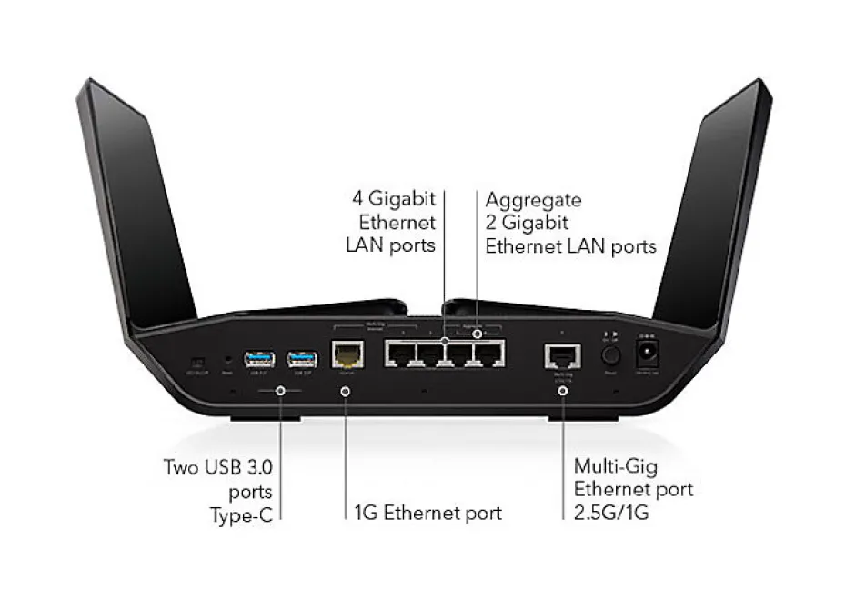 Le NETGEAR RAXE500 est un routeur Wi-Fi 6E tribande ultra-rapide, offrant des vitesses allant jusqu’à 10,8 Gbit/s. Il est doté d’un puissant processeur quad-core à 1,8 GHz et de 12 flux simultanés, ce qui lui permet de gérer facilement plusieurs appareils connectés simultanément. Le RAXE500 est également compatible avec le protocole WPA3, la dernière norme de sécurité Wi-Fi.Le RAXE500 est idéal pour les foyers et les bureaux connectés, car il offre une connexion Wi-Fi rapide et fiable à tous les appareils. Il est également parfait pour les joueurs et les streamers, car il offre une latence réduite et une qualité de service (QoS) prioritaire pour les applications de jeux et de streaming.Caractéristiques principales * Wi-Fi 6E tribande avec des vitesses allant jusqu’à 10,8 Gbit/s * Processeur quad-core à 1,8 GHz pour une performance optimale * 12 flux simultanés pour gérer plusieurs appareils connectés simultanément * Compatible avec le protocole WPA3 pour une sécurité Wi-Fi optimale * 4 ports Ethernet Gigabit (1 WAN + 3 LAN) et 1 port Ethernet 2,5 Gigabit (LAN/WAN)