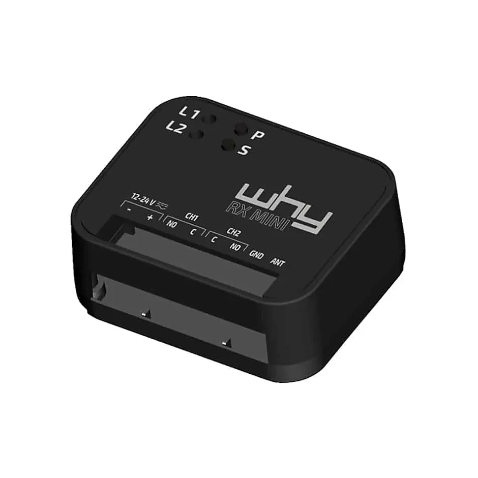 Récepteur universel SICE WHY RX MINI (Réf : 4790310) à double fréquence 433.92 MHz / 868.35 MHz, deux canaux et mémoire 40 codes, compatible avec de nombreuses marques du marché pour remplacer ou étendre vos systèmes radio.