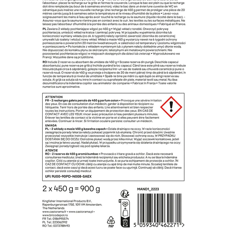Recharge pour absorbeur d’humidité GoodHome 2 galets coton 20m² 450g