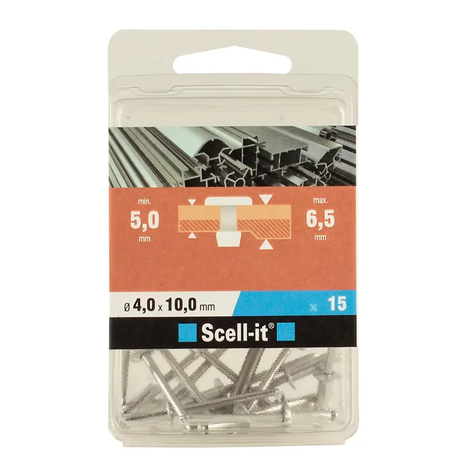 Rivet aveugle tête plate aluminium 4,0 x 10 mm, 15 pièces
