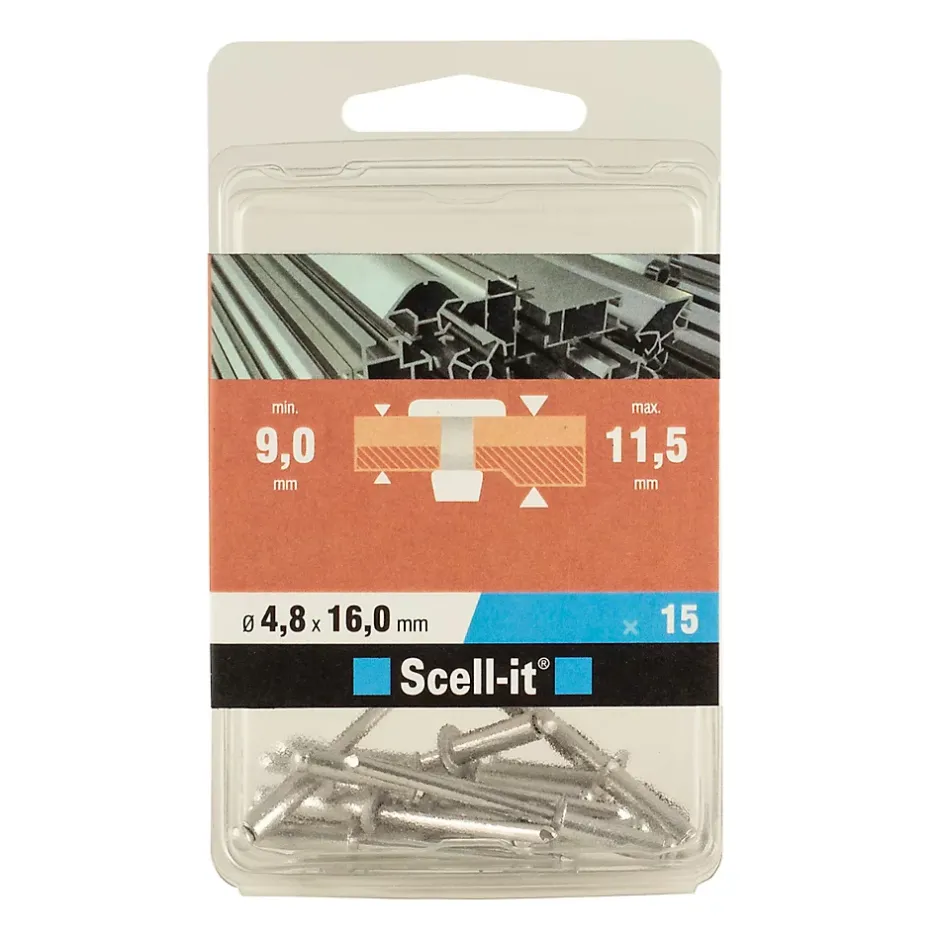 Rivet aveugle tête plate aluminium 4,8 x 16 mm, 15 pièces