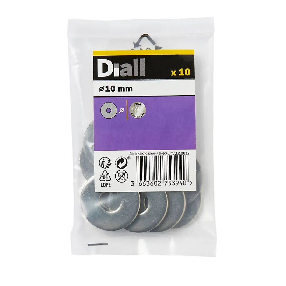 Les 10 grandes rondelles plates de ce pack sont fabriquées à partir d’acier inoxydable. Elles ont un diamètre M10. Elles sont idéales pour tout un éventail de projets de bricolage.