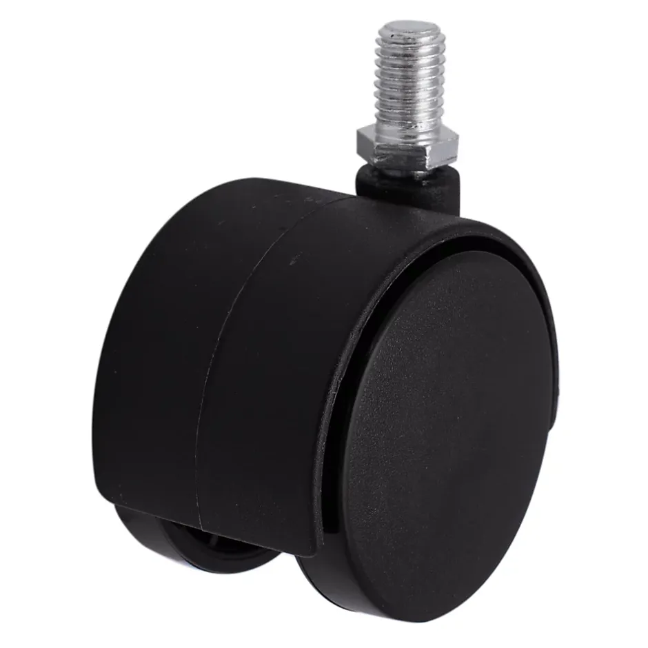 Roulette jumelée pivotante sans frein ø50 mm, tige filetée 10 x 20 mm, charge max 40kg