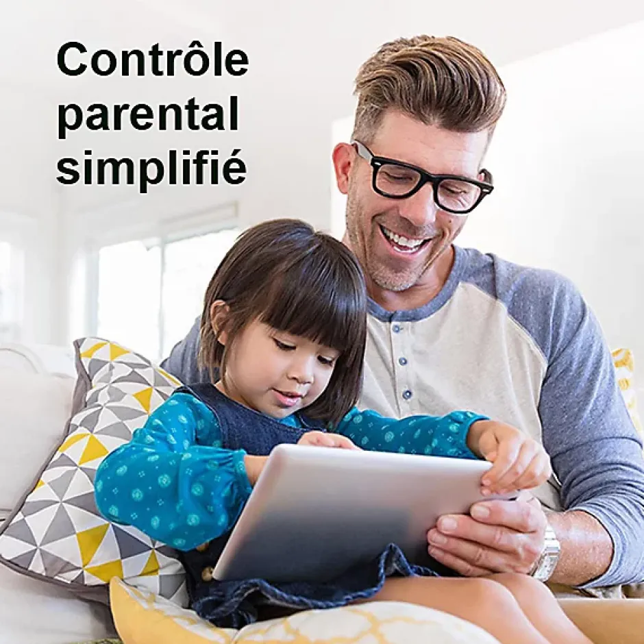 - Réseau haute sécurité. Superviser l’activité en ligne de vos enfants, configurer une liste noire de sites et limiter le niveau d’accès Web.