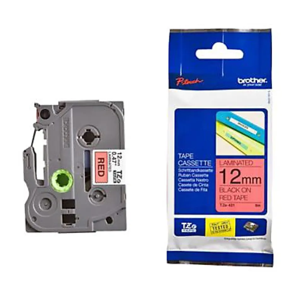 Ruban pour étiqueteuse TZE431 noir sur rouge 12 mm x 8 m.Type : Ruban laminé.